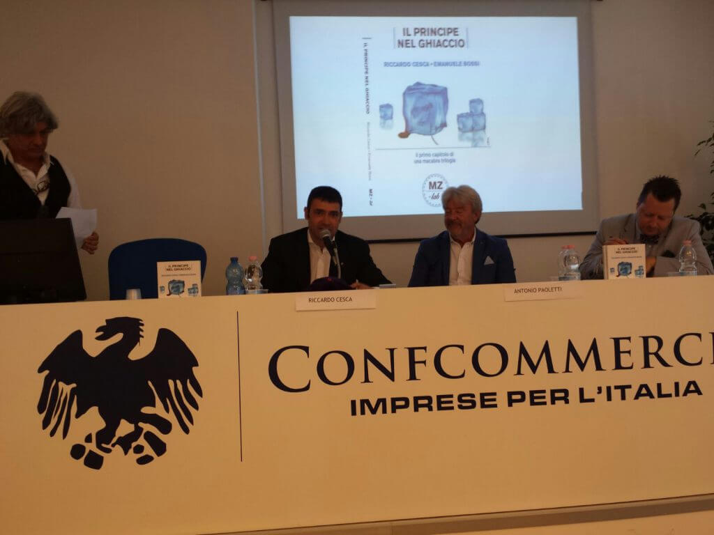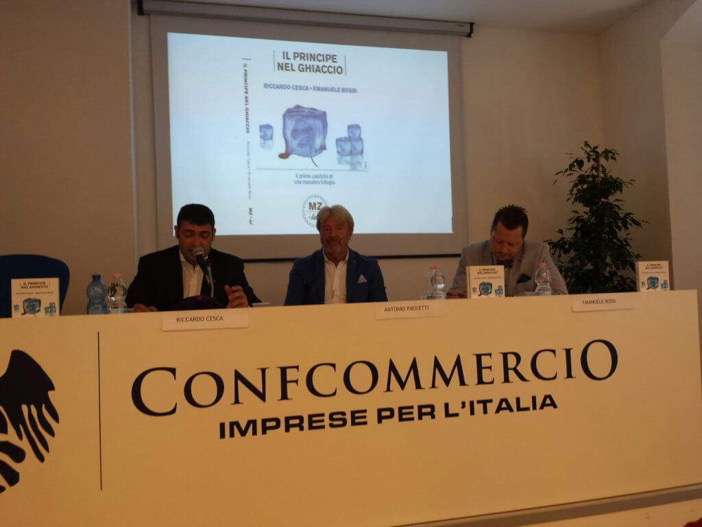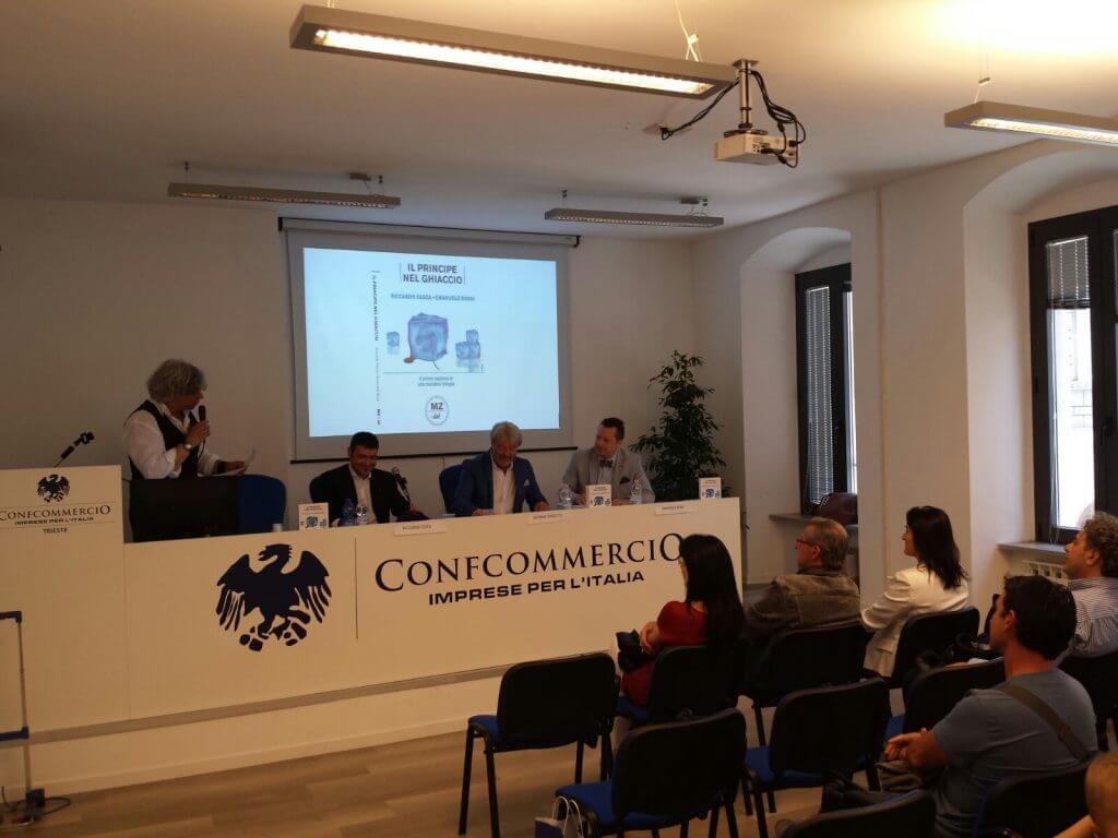 The novel “The Prince in the Ice” (Il Principe nel Ghiaccio) was presented on Wednesday morning, 22nd of June, at the Confcommercio in Trieste in via Mazzini 22. It is the authors’ debut novel published by Meridiano Zero. The journalist Francesco Cardella presented the novel, with criminal-noir features, by illustrating to the public the book’s writing style through an intense dialogue with the authors who were available to those who were present to describe the birth of the thriller and of the multimedia project.